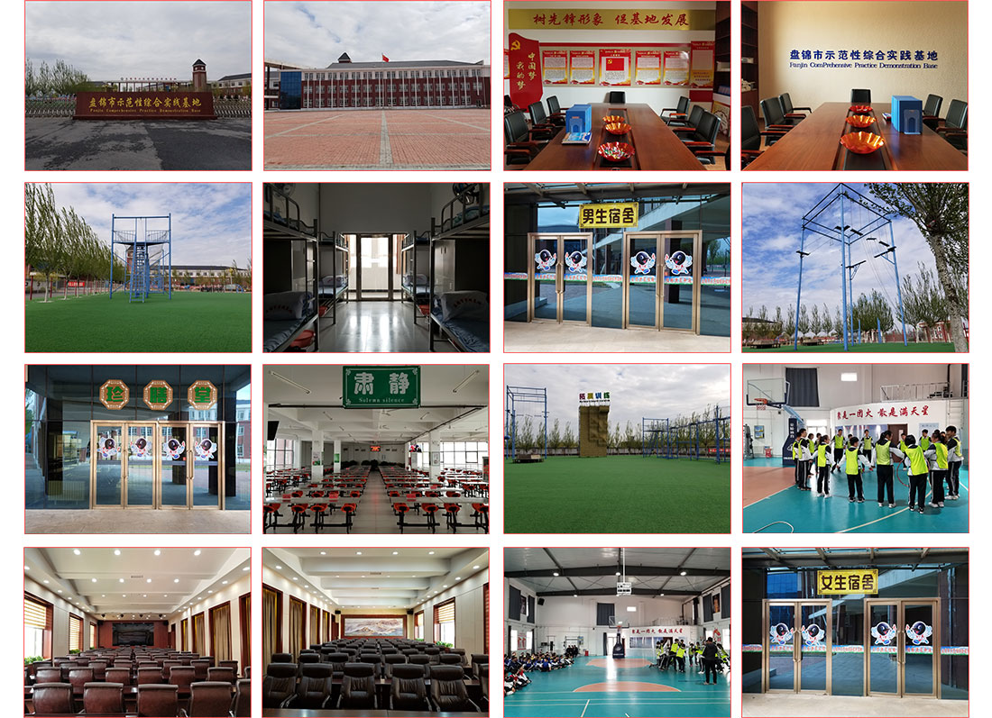 獅愛(ài)盤(pán)錦市示范性綜合實(shí)踐基地坐落于美麗的遼東灣新區(qū),附近既是舉世聞名的“紅海灘風(fēng)景區(qū)”,2016年9月投入使用,是國(guó)家級(jí)示范性綜合實(shí)踐基地。基地占地面積112畝,總建筑面積2萬(wàn)平,整體分為五大區(qū)域:拓展訓(xùn)練區(qū)、學(xué)軍區(qū)、學(xué)農(nóng)區(qū)、生命安全教育區(qū)及綜合訓(xùn)練區(qū),可同時(shí)接待1000名學(xué)員餐飲、住宿及培訓(xùn)工作,目前是省內(nèi)設(shè)施最為完善的教學(xué)培訓(xùn)基地。